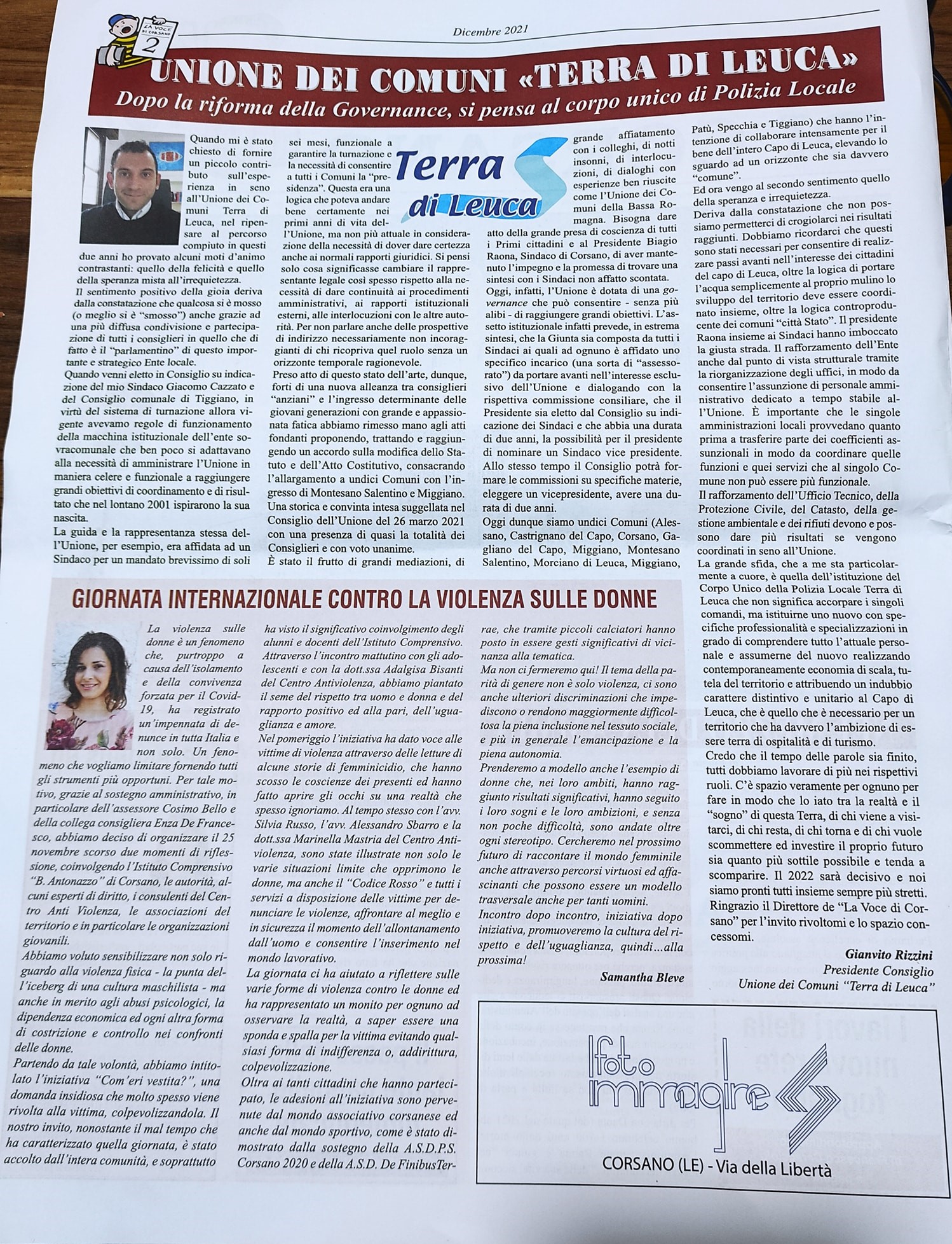 La Voce Di Corsano nella prima edizione del giornale 2022.